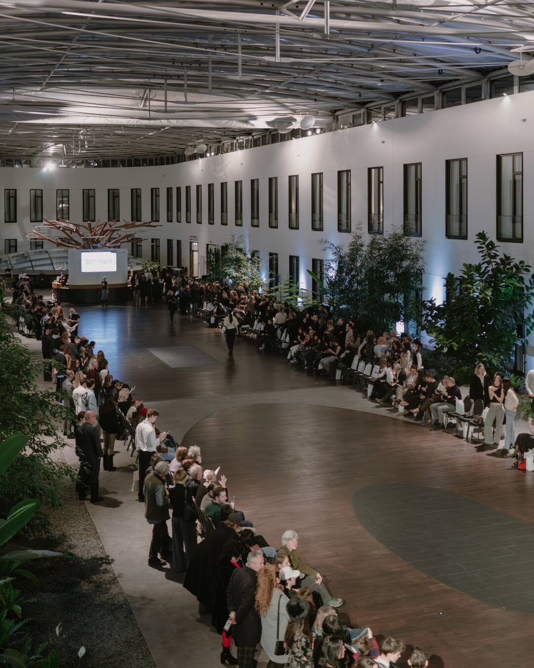 Im Atrium inszeniert: Ein langer Catwalk, durchdachtes Lichtkonzept und eine eindrucksvolle Raumhöhe schaffen die perfekte Bühne für Modeformate mit Strahlkraft. Die exklusive Architektur mit integrierten Pflanzen sorgt für ein außergewöhnliches Setting mit natürlicher Eleganz. Dank guter Akustik und klarer Sichtachsen wird jede Show zum immersiven Erlebnis – atmosphärisch, hochwertig und technisch professionell umgesetzt.